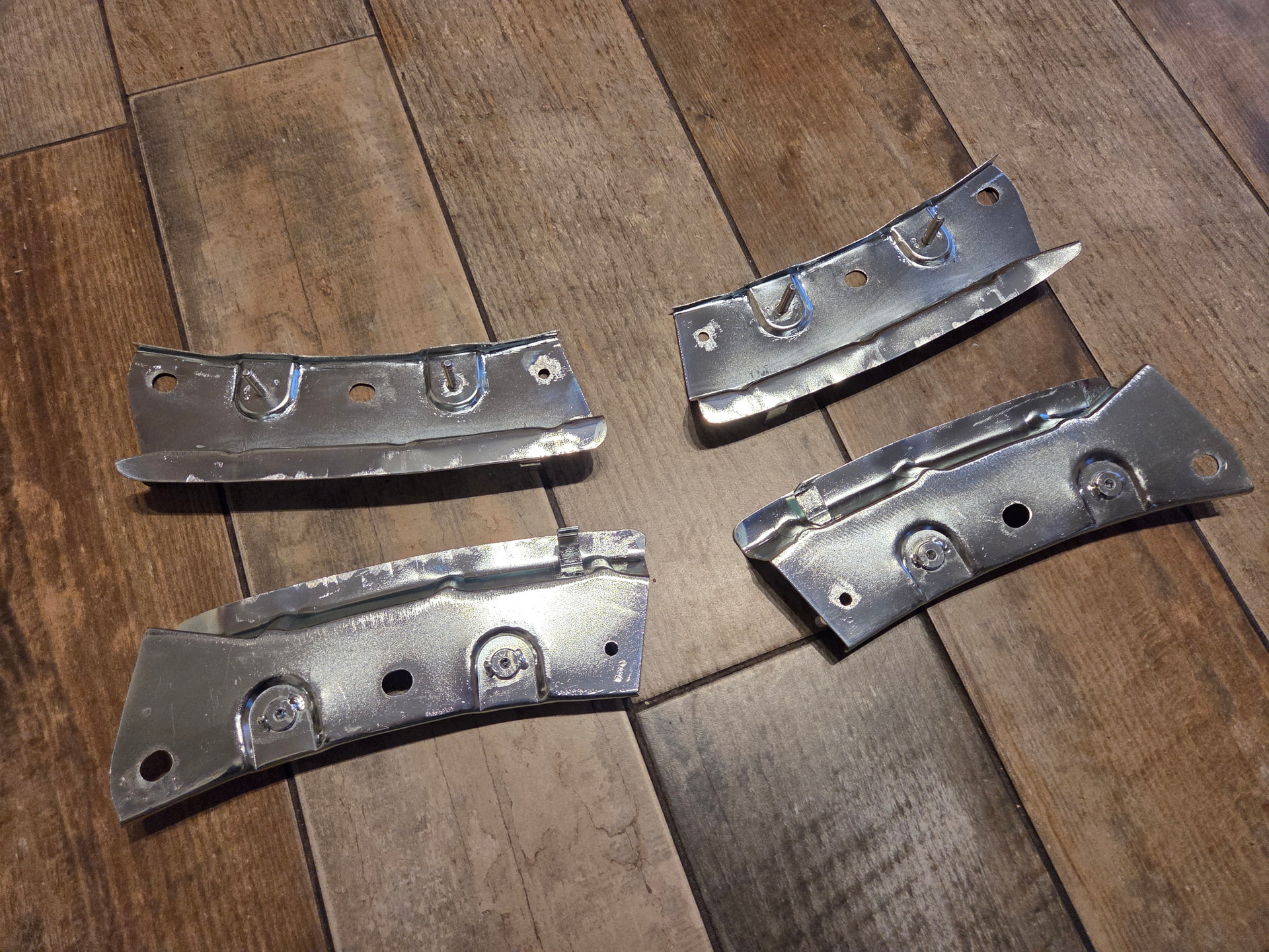 They are the lower sandwich plates for the front bumper that go with the upper brackets where the headlights are. Without these fitted the bumper will sit a few mm lower and wont be clamped properly to the headlight buckets. I dont think you can fit them without removing the bumper, not easily anyway. They tend to rot away, I had a fabricator make me some replacements as they are no longer available…