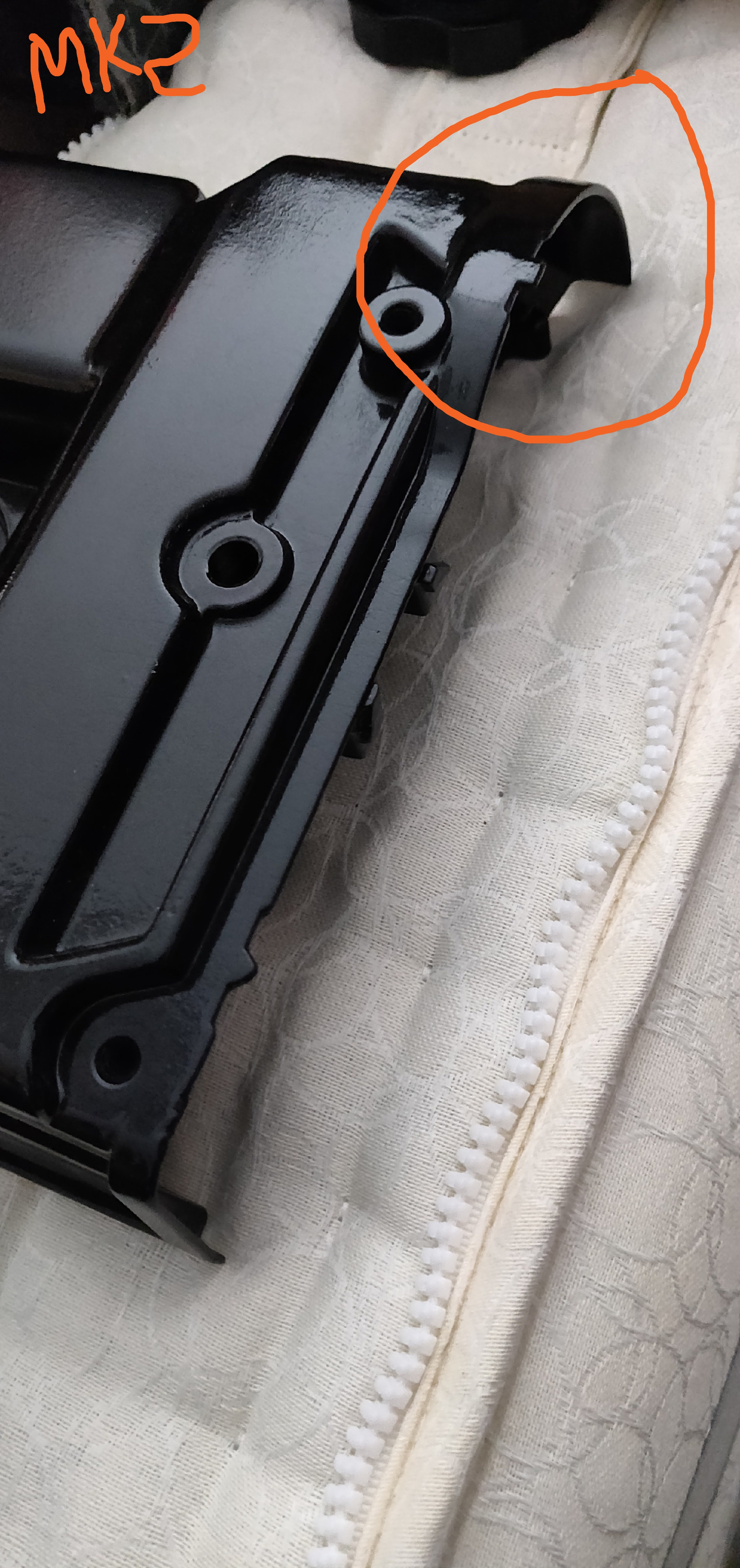 Where as the MK2 Rear rocker cover also has two threaded holes but the rear of the two holes is offset to the left again if standing in front of the car.